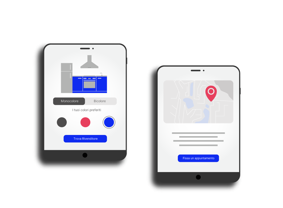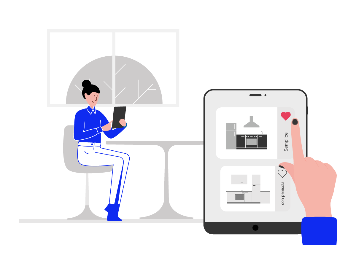 La cucina consigliata da Archimobile viene mostrata a Lucia in tutte le sue parti e componenti nel potente configuratore 3D e scopre che può aggiungere il suo tocco! Lucia ha scelto una cucina moderna con finitura effetto cemento e legno. Poi ci ripensa, cambia la posizione di forno e frigorifero e trova la cucina giusta per la sua casa. Lucia vuole acquistarla e localizza nella mappa l’ArchiStore dispone del prodotto scelto e procede a prenotare l’appuntamento.